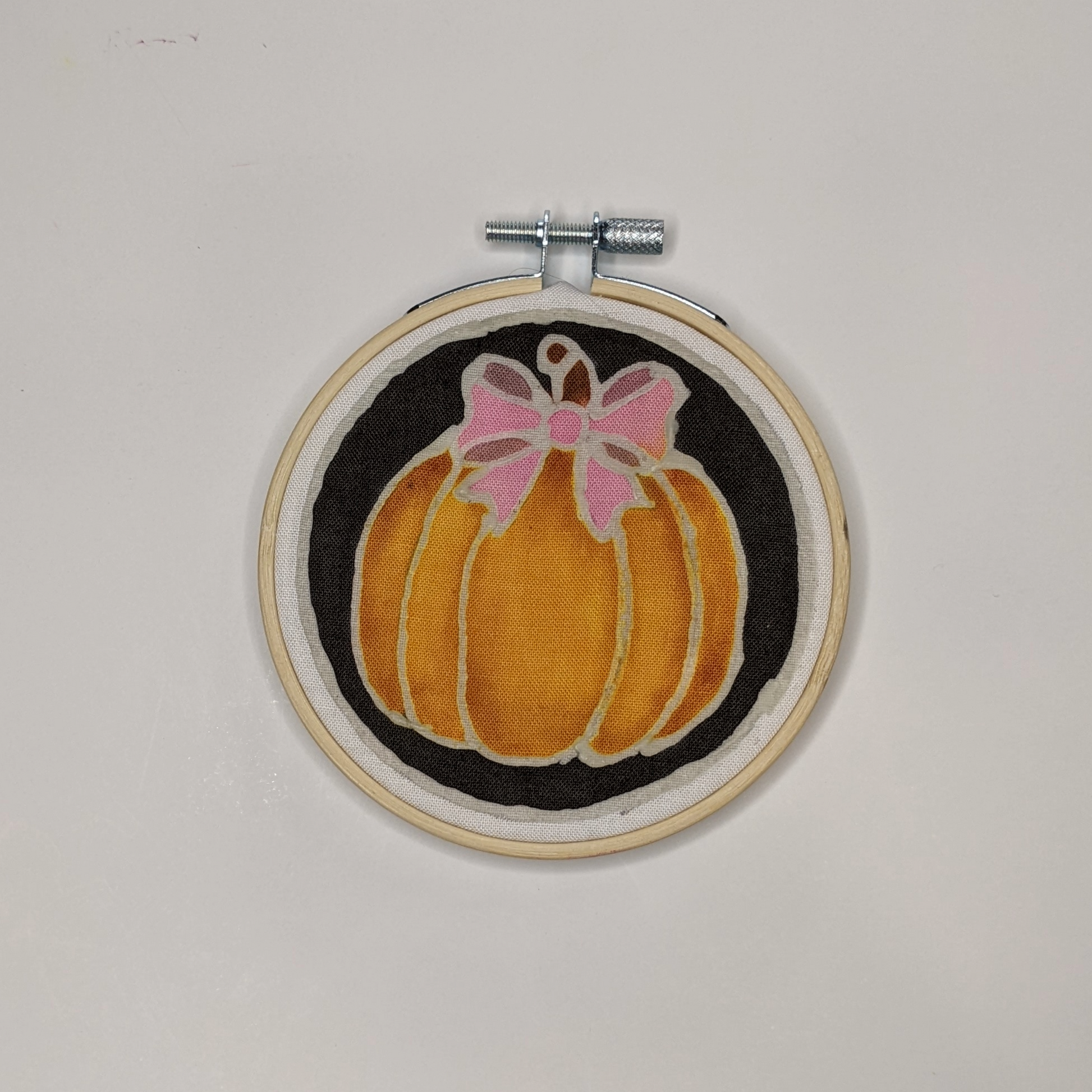 🎃 Autumn Charm – A pumpkin adorned with a bow.
